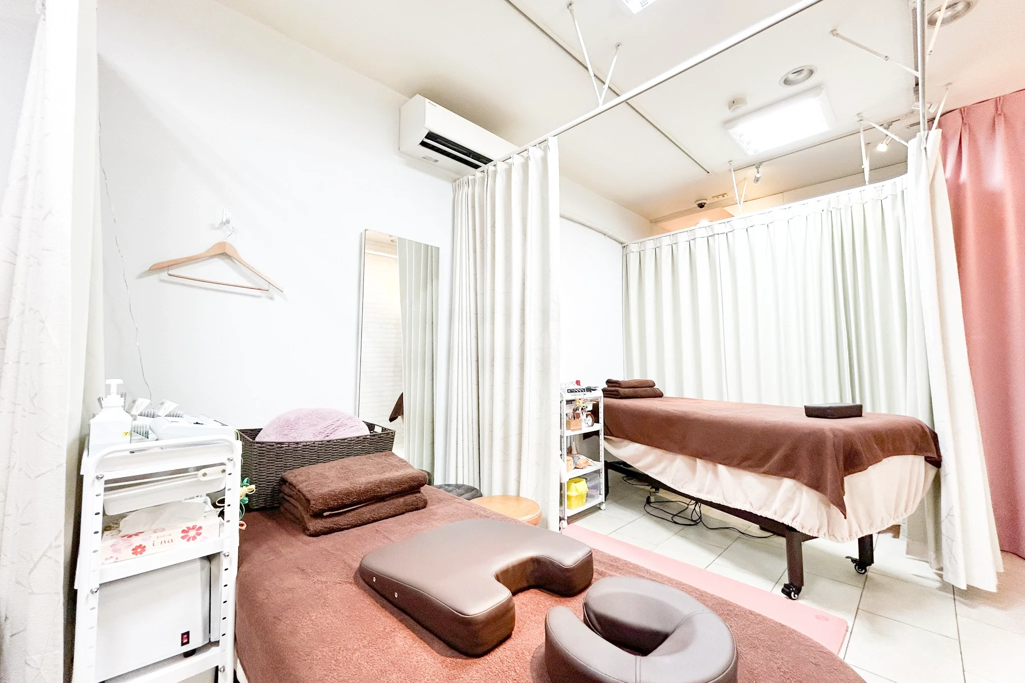 服装はできるだけ薄着になっていただきます。カーテンを引き個室状態になりますのでご安心ください。